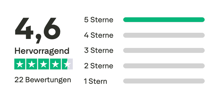 Unser Podcast wurde bis dato über 57.000 Mal wiedergegeben. Die durchschnittliche Bewertung liegt bei 4,9 von 5 Sternen. Auf Trustpilot wurden wir mit 5 von 5 Sternen bewertet. Ein Beweis dafür, dass wir nicht nur wirtschaftlich sinnvolle Weblösungen bauen, sondern diese auch vermarkten können.