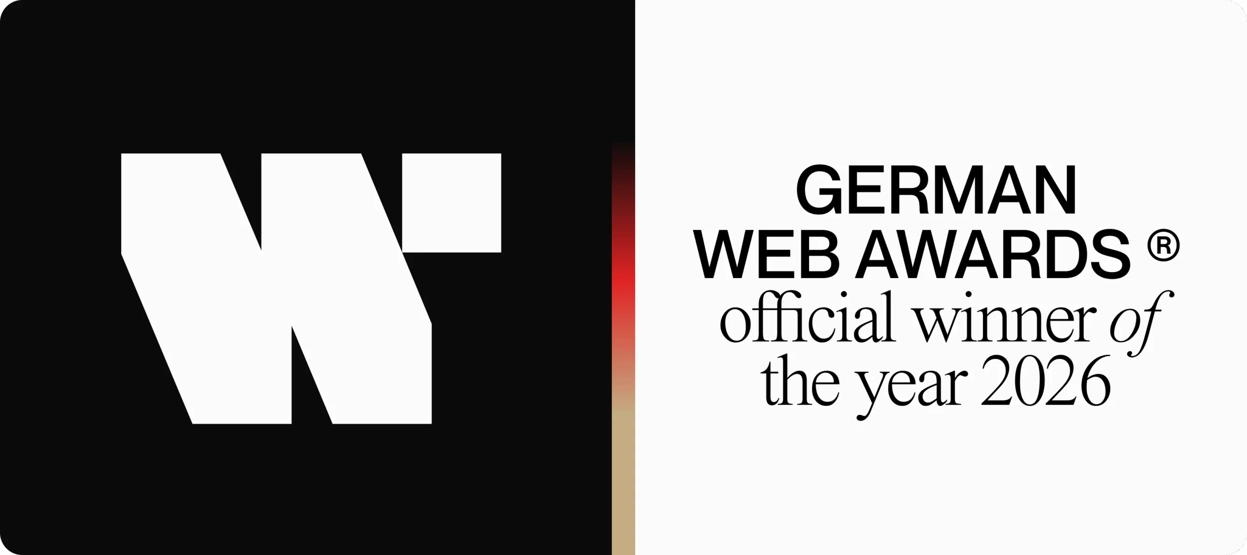 Für diesen strategischen Ansatz wurden wir mit dem German Web Award ‘26 ausgezeichnet. Ein Award, der uns zu einer der besten Webagenturen Deutschlands macht.