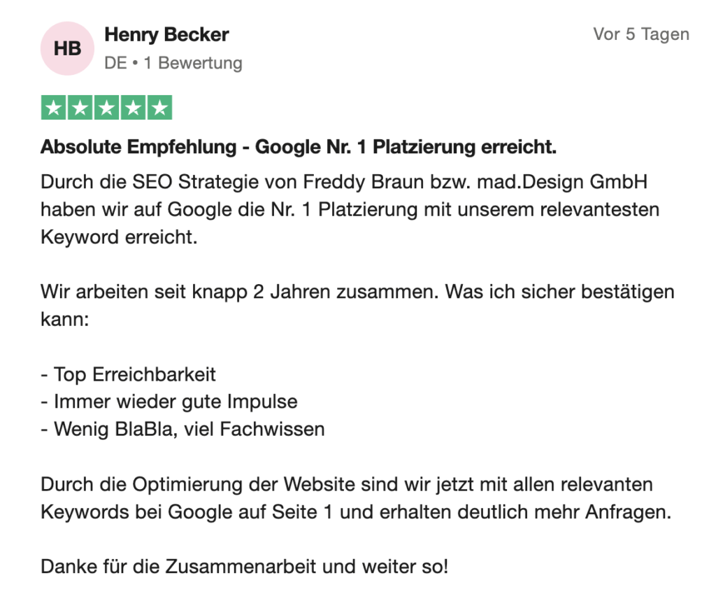 Und dann eine Website, die diesen Traffic auch in Anfragen verwandelt. Das ist der Grund, warum wir GEO bei mad.Design nie isoliert betrachten.